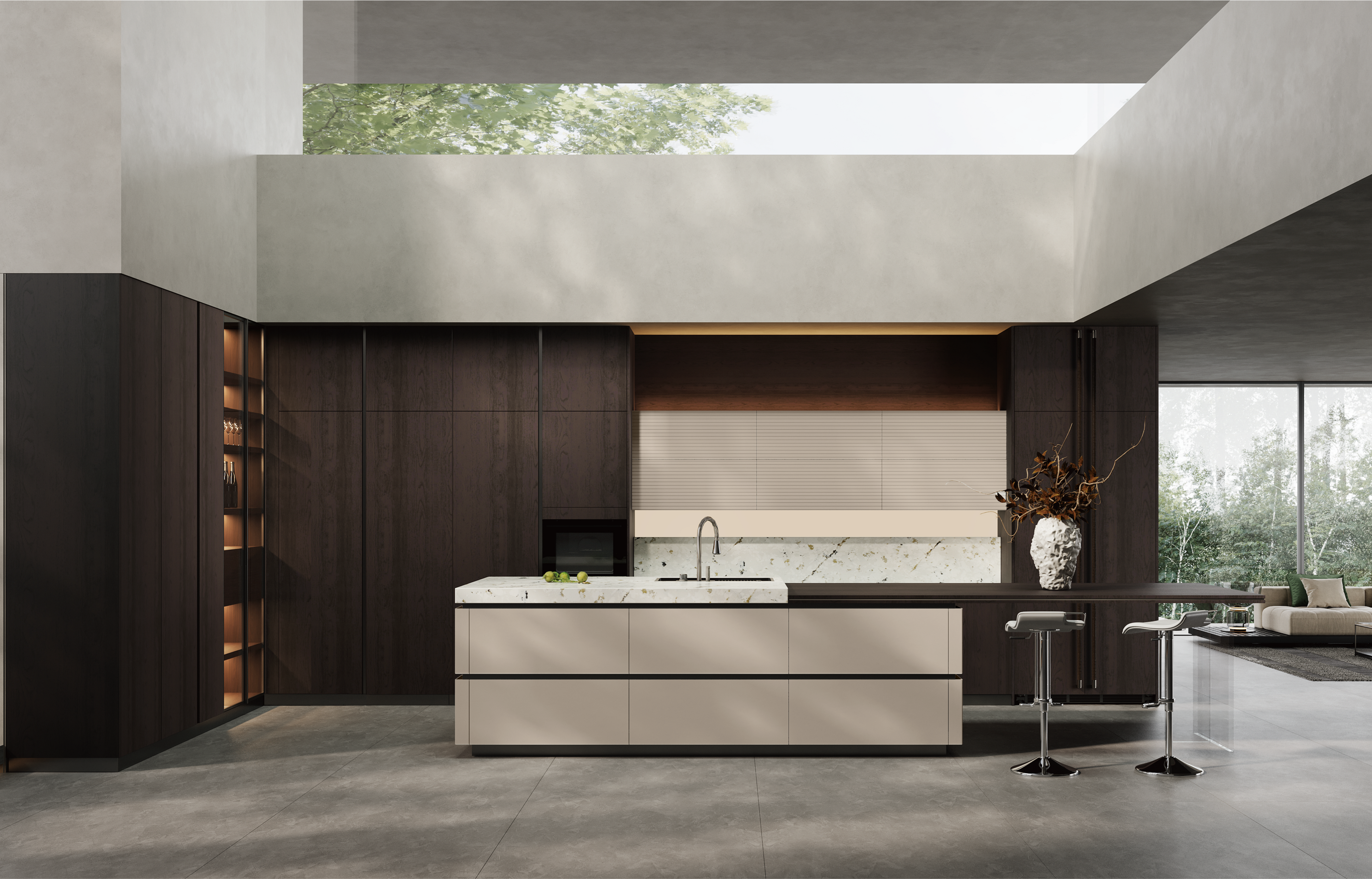 通过九游会j9厨柜量体裁柜,定制出适合主厨下厨的烹饪区和洗涤区的舒适高度。